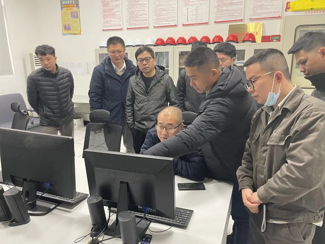 檢查組一行首先來到風電場中控室,通過風光一體化監(jiān)測系統(tǒng)了解風電、光伏新能源項目的相關(guān)運行數(shù)據(jù)及運營情況。